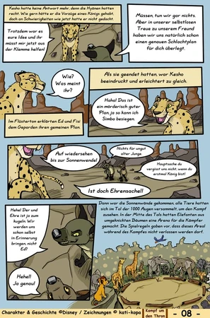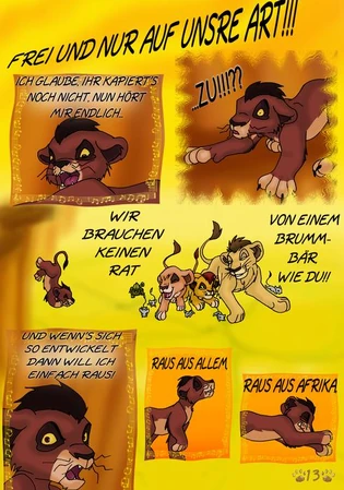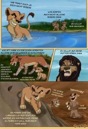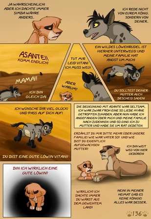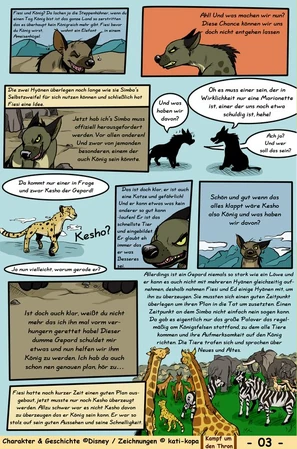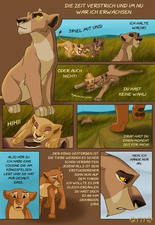 Sie versucht die Ereignisse die zwischen den Filmen und auch die vor der Geschichte Simbas zu enthüllen und mit den Ereignissen aus Filmen zu verknüpfen. Sie bezieht sich auch auf Offizielle bücher wie Six new Adventures. Ihr Fan Comic besteht nur zu kleinsten Teilen aus Fan fiction, sie Baut zum Beispiel ihre eigene Geschichte zu Ziras Herkunft mit ein oder auch wie Kopa verschwunden ist und die darauf folgende Verbannung von Zira. Sie erschaft eine völlig neue Ansicht zu König der Löwen.